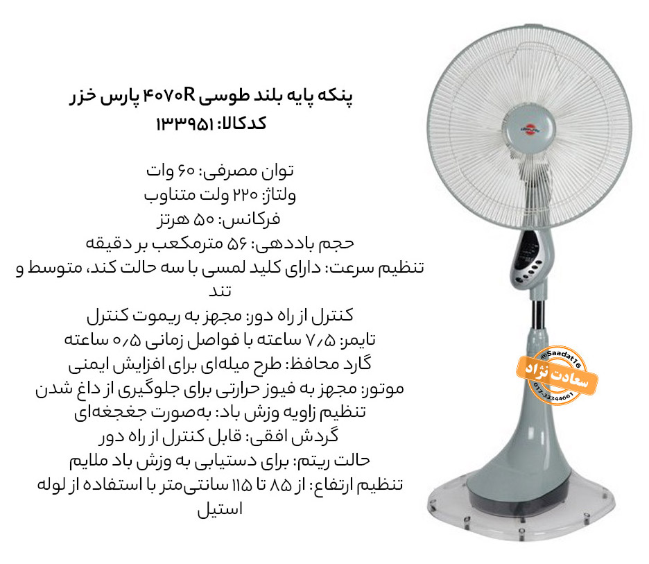 پنکه پایه بلند کنترل دار 4060R پارس خزر (قیمت چکی)